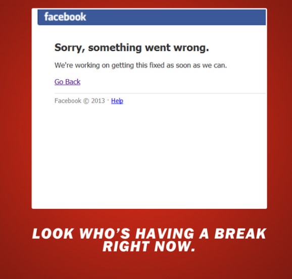 Przerwa w działaniach Facebooka była wielkim wydarzeniem, marka której hasło brzmi “Czas na przerwę, czas na Kit Kat” nie mogła przejść obojętnie obok takiego wydarzenia. W tym czasie wypuścili kampanię, która cieszyła się ogromnym powodzeniem.